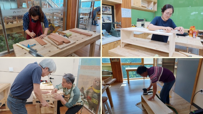 교육내용 : - 목재의 종류와 특성이해 - 수공구 사용법 및 가구제작 기법 습득 - 실생활에 이용되는 가구 제작 주의사항 : ※ 유석근 명장의 서각 프로그램 및 소목공예(심화반)과 중복 신청할 수 없음. ※ 공주시민(공주소재 직장인) 우선 선발, 출석 70% 이상 수료 |